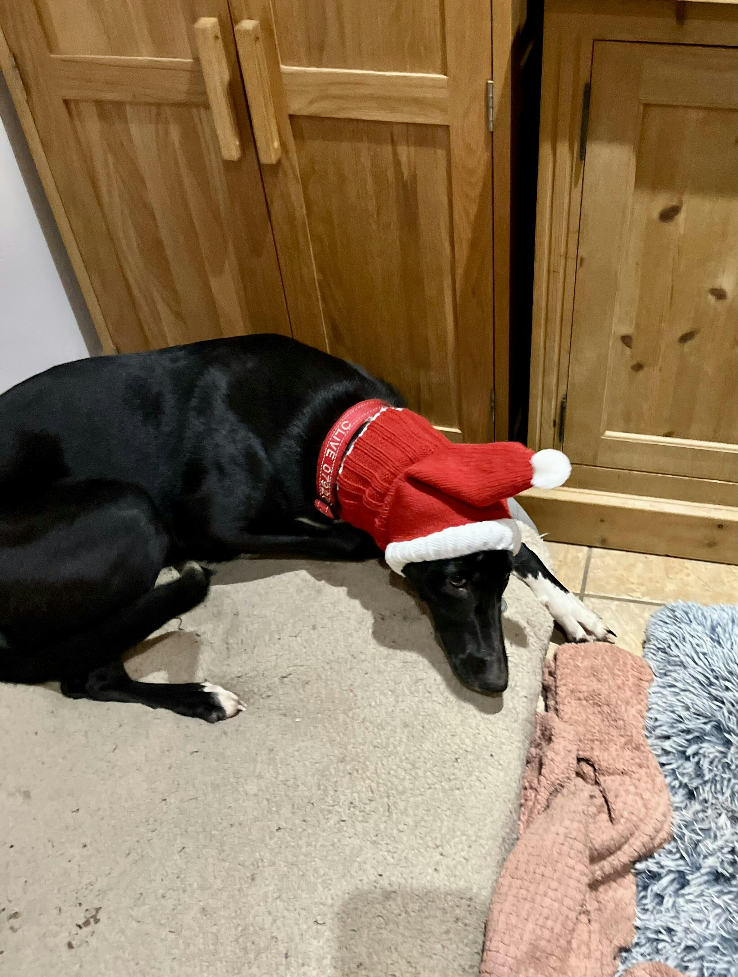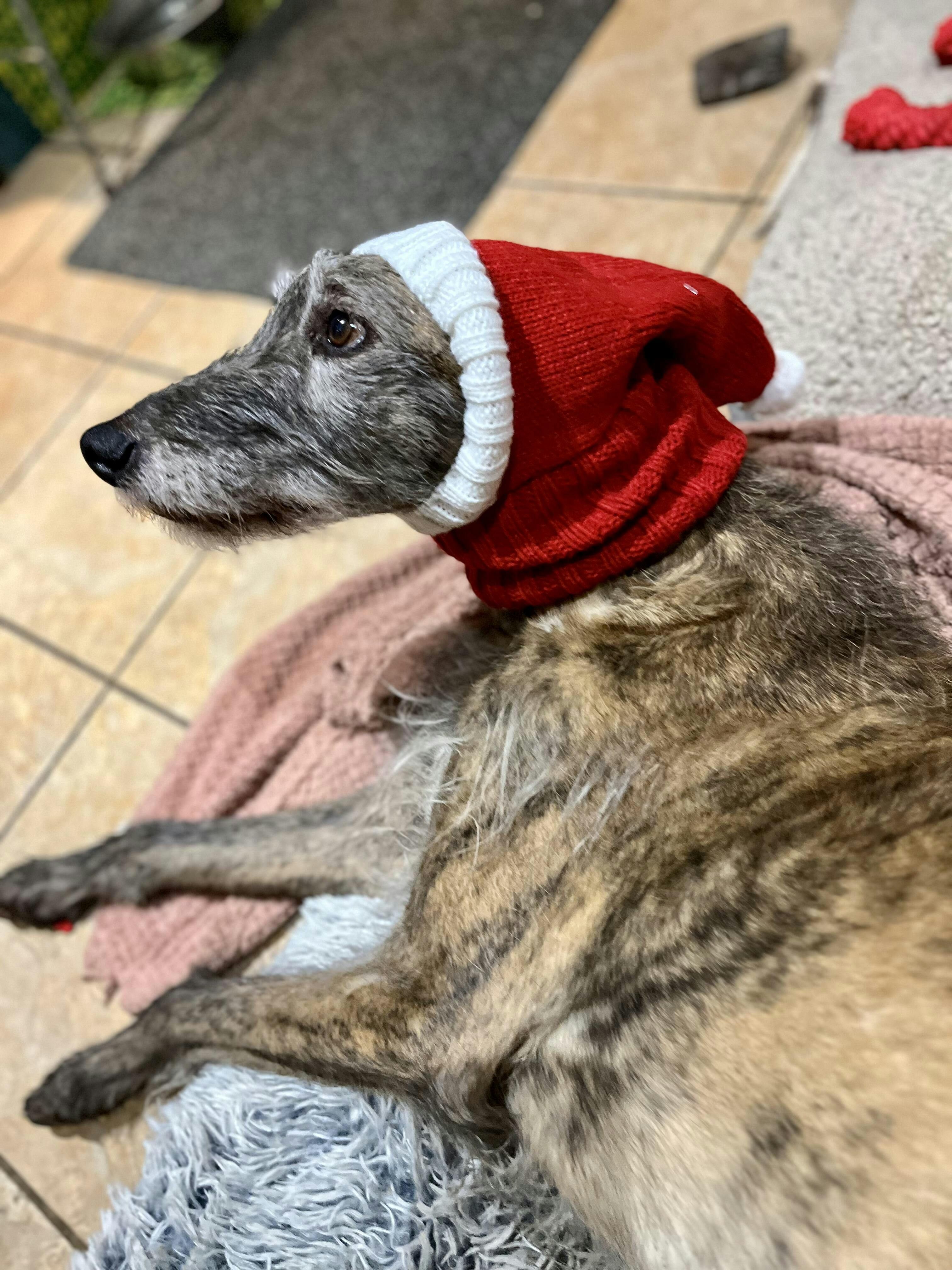 Warm, festive snood. Looks great if your dog is happy to wear it