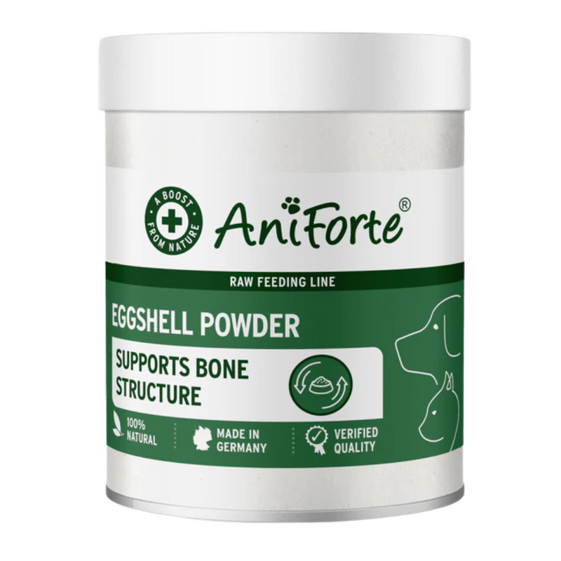 AniForte Eggshell Powder is a premium, natural supplement made from finely ground eggshells, offering a rich source of calcium to support your pet's bone health. This pure and mineral-rich powder is an excellent addition to your pet’s diet, particularly for those on a raw feeding diet or those needing extra calcium for bone development.