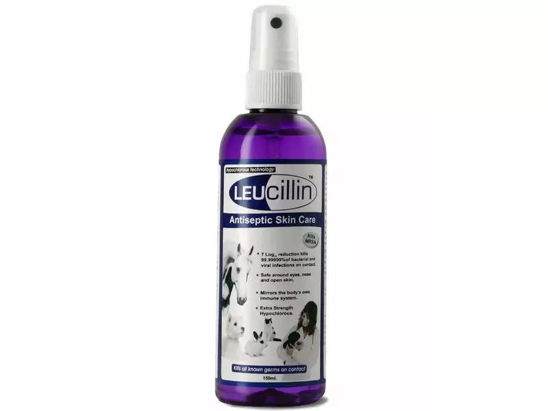Leucillin Antiseptic Skin Care is a fast-acting solution designed to soothe and protect your pet’s skin. This versatile spray helps manage minor wounds, irritation, and skin conditions, offering antibacterial, antifungal, and antiviral properties. Safe for all pets, including cats, dogs, and horses, Leucillin is gentle, non-toxic, and free from alcohol and steroids. Ideal for cuts, grazes, hot spots, and itchy skin, this award-winning formula is a must-have for any pet first aid kit. Easy to use and fast-drying, Leucillin ensures your pet's comfort and speedy recovery