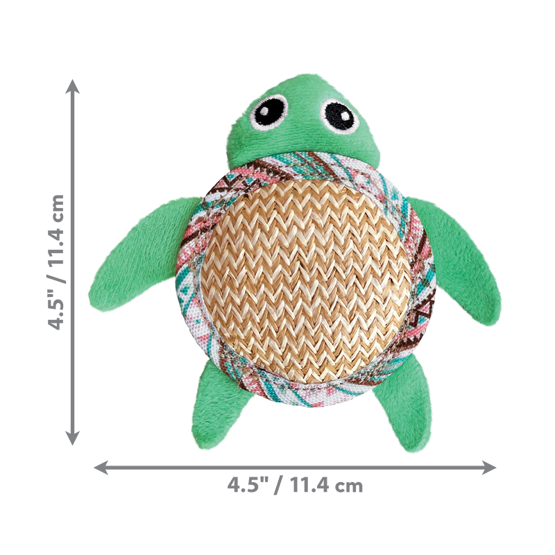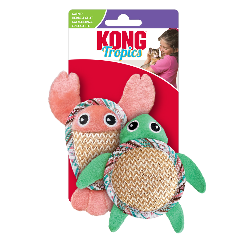 The KONG Tropics Pals will swim straight into your cat’s heart with their irresistible textures and stimulating features! These ocean-inspired toys are designed for interactive and independent play, featuring scratchy herringbone shells that satisfy natural scratching instincts and soft plush for cuddling. Infused with KONG’s North American Premium Catnip and a crackly filling, these toys encourage batting, pouncing, and hours of feline fun.