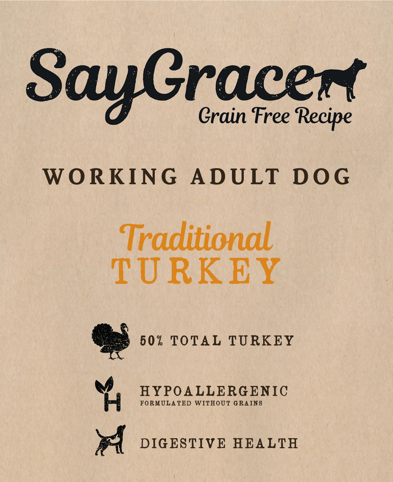 SayGrace Grain-Free Working Adult Traditional Turkey Dry Dog Food